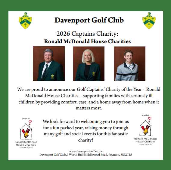 This year we have welcomed in our new Captains Tony, Michele and Harry. They’ve got a lot of exciting plans for the club, to bring golf social and community events to Davenport Golf Club, and along the way raise some money for our 2026 Captains Charity – Ronald McDonald House Charities.